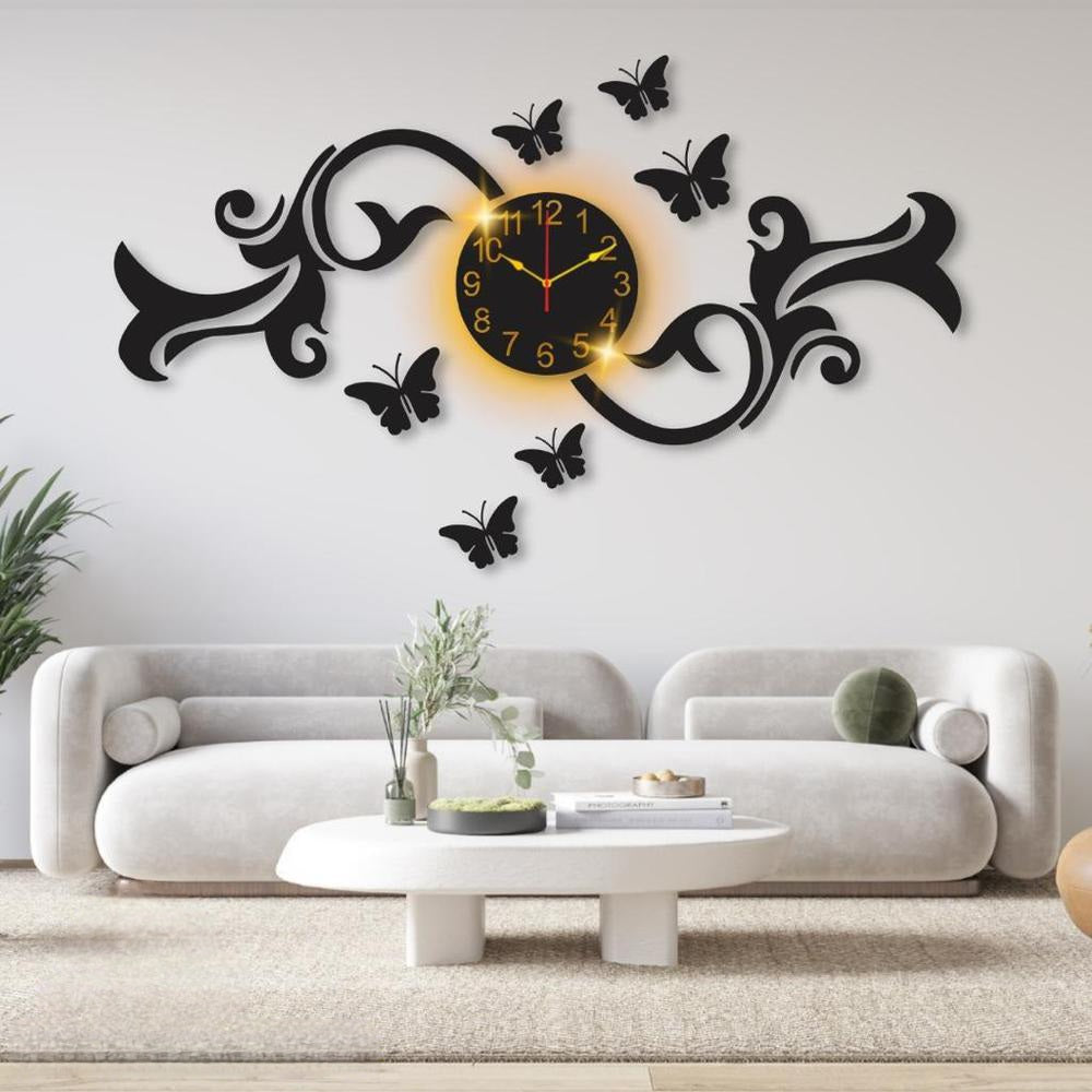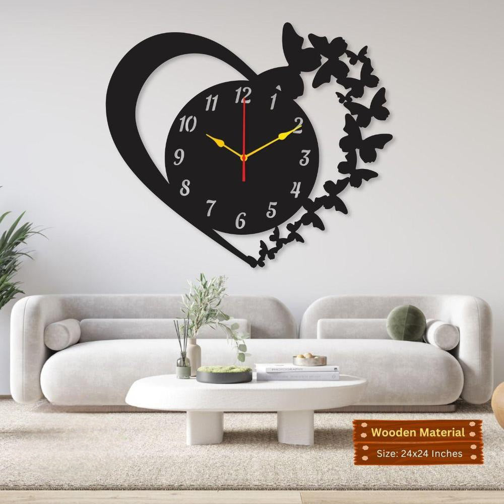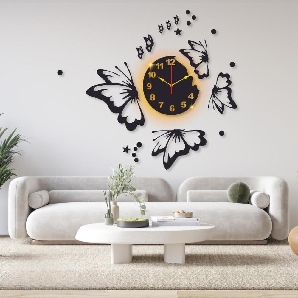 Crafted from high-quality chipboard laminated sheet, the Butterfly Laminated Wall Clock boasts a stunning 12-hour display and a stylish, modern design. Measuring 24 x 24 inches and with a thickness of 3mm, this clock is the perfect addition to any home or office. With an included double tape for easy hanging, this clock is both functional and beautiful. Please note that the product color may vary slightly due to lighting or monitor settings.
